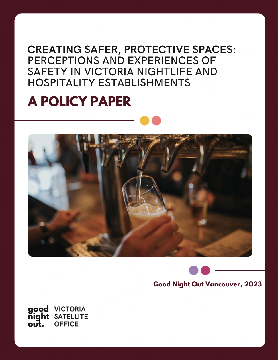 From November 2022 to February 2023, Good Night Out gathered information on community perceptions and experiences of safety within hospitality and nightlife spaces in Victoria, British Columbia to learn how to increase safety for patrons and workers.