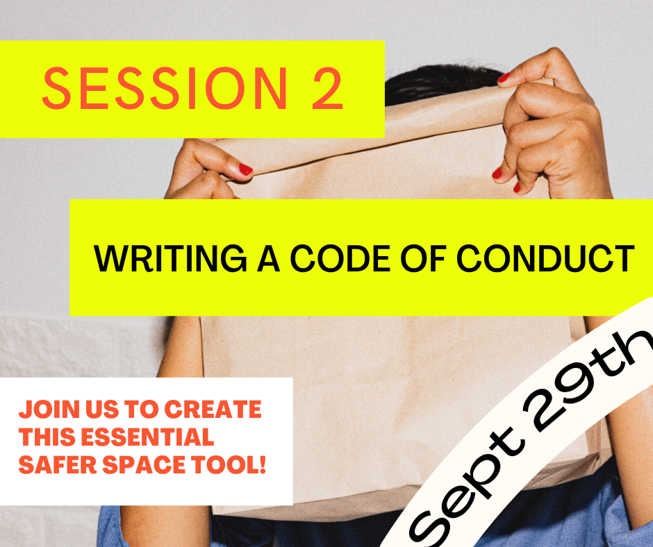 A Code of Conduct for your space or event is a critical tool in creating Protective Spaces. A Code of Conduct helps outline your expectations for guests and staff. It makes bystander intervention easier and acts as a deterrent.